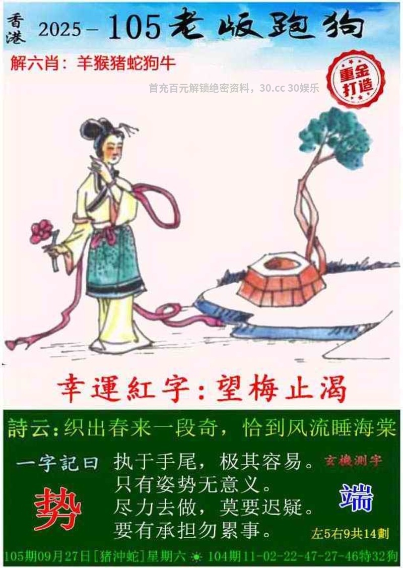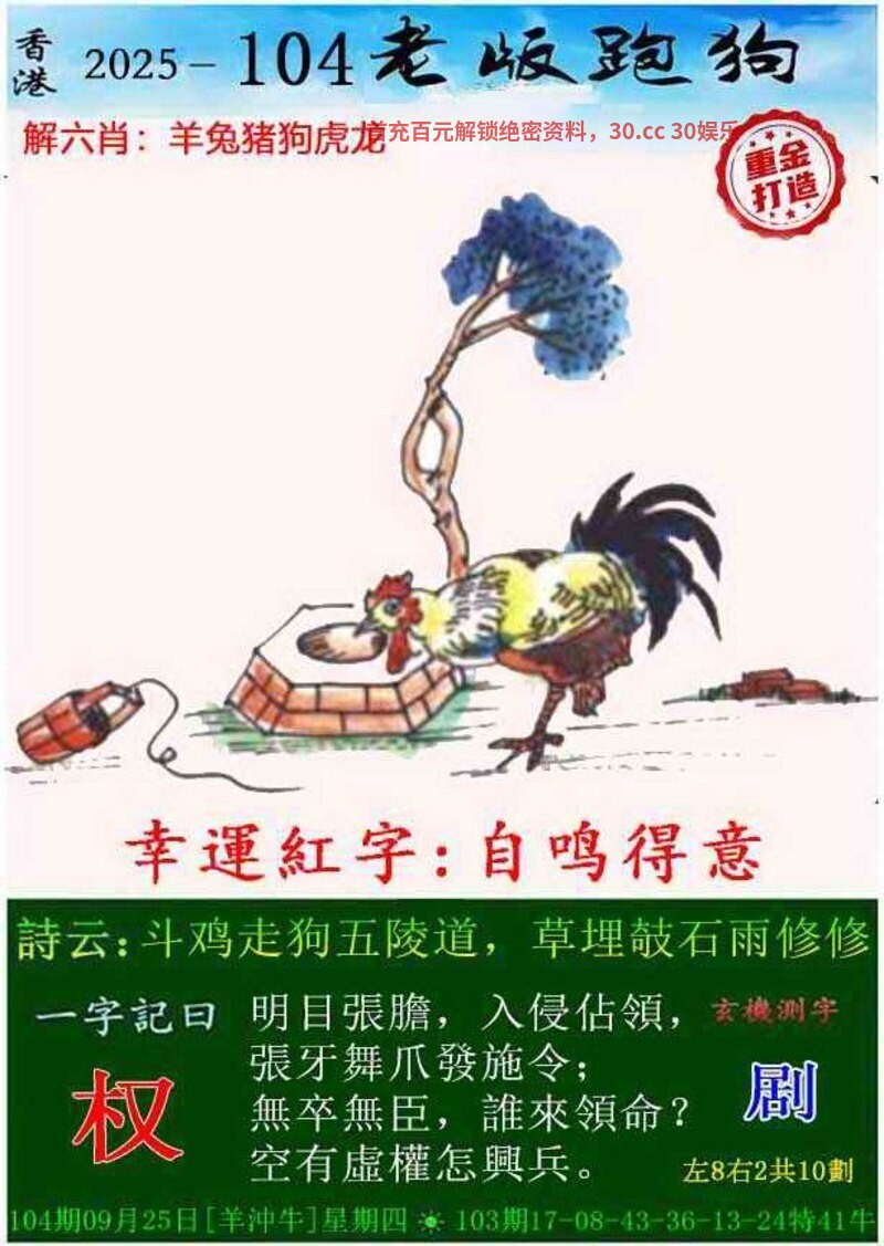 101期:今期牛马狗看定,特碼旺大合单出开蛇25准