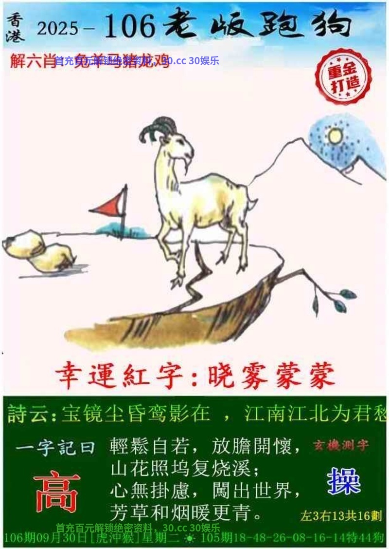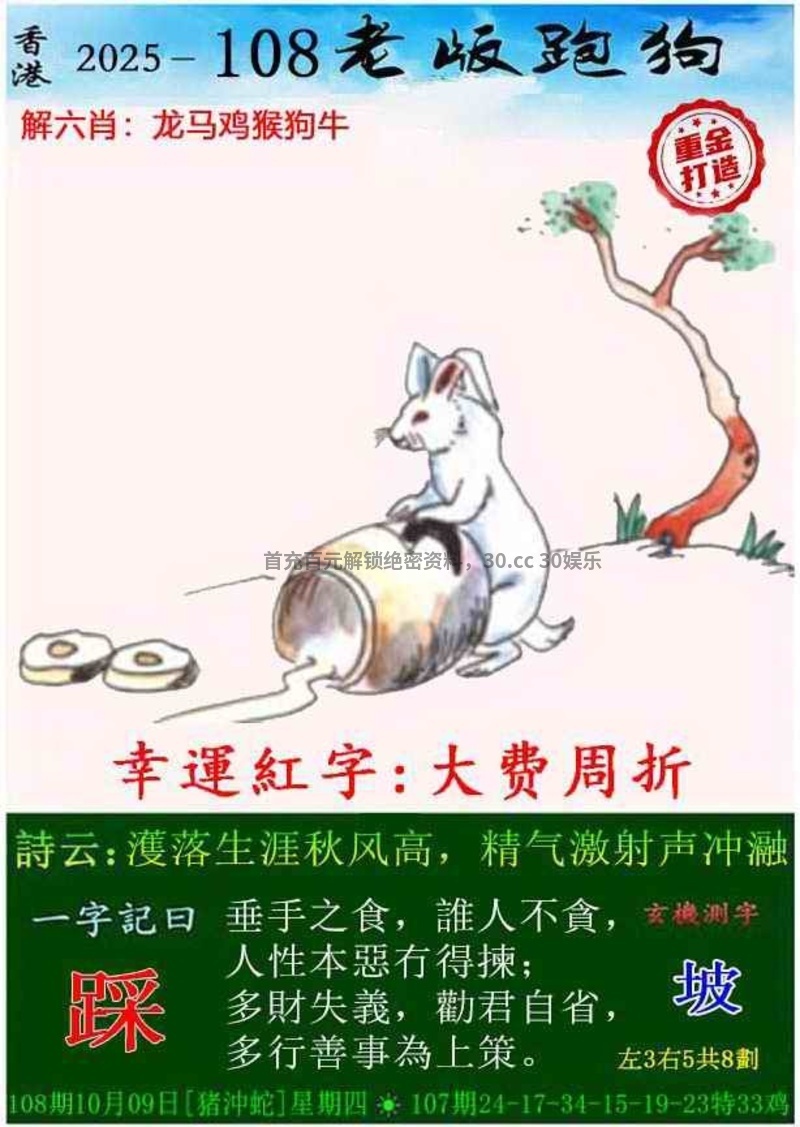 100期:今期狗猴虎看定,特碼旺大合单出开鼠30准